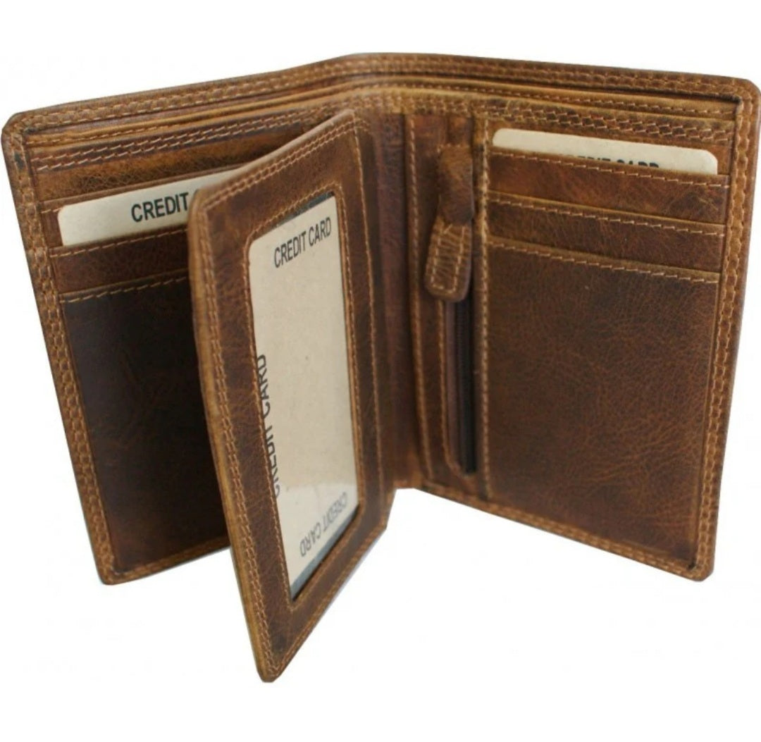 Rugged Earth Mens Trifold Leather Wallet With Zip Coin Pocket